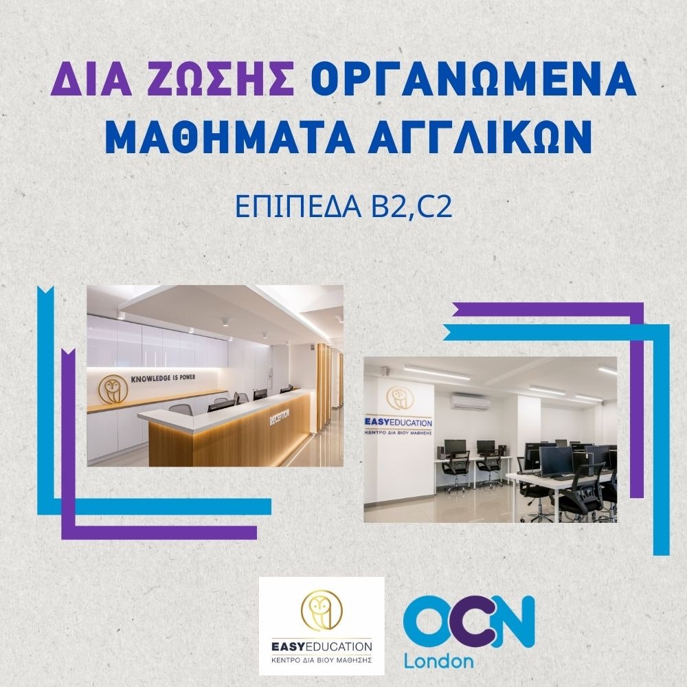 Τα ΚΔΒΜ Easy Education υλοποιούν δια ζώσης πρόγραμμα Αγγλικών που οδηγεί στην απόκτηση πιστοποιητικού για τα επίπεδα Β2 και C2.